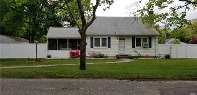 Lovely South of Montauk cape offering 4 bedrooms, 2 full baths, formal living room and dining room, den, EIK, laundry room, basement with lots of storage, wood flooring on first floor, dual fireplace for den and dining room, updated burner and hot water heater, 5 year young architectural roof, beautiful block patio and walkway, vinyl fencing, cedar front with vinyl exterior on other 3 sides, 1 car garage with over sized driveway. Close to school.